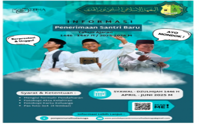 Assalamu'alaikum wr.wb. Memasuki tahun Pelajaran Baru Pondok Pesantren Nurul Huda Moga kembali menerima Santri Bari TP. 1446/1447 H